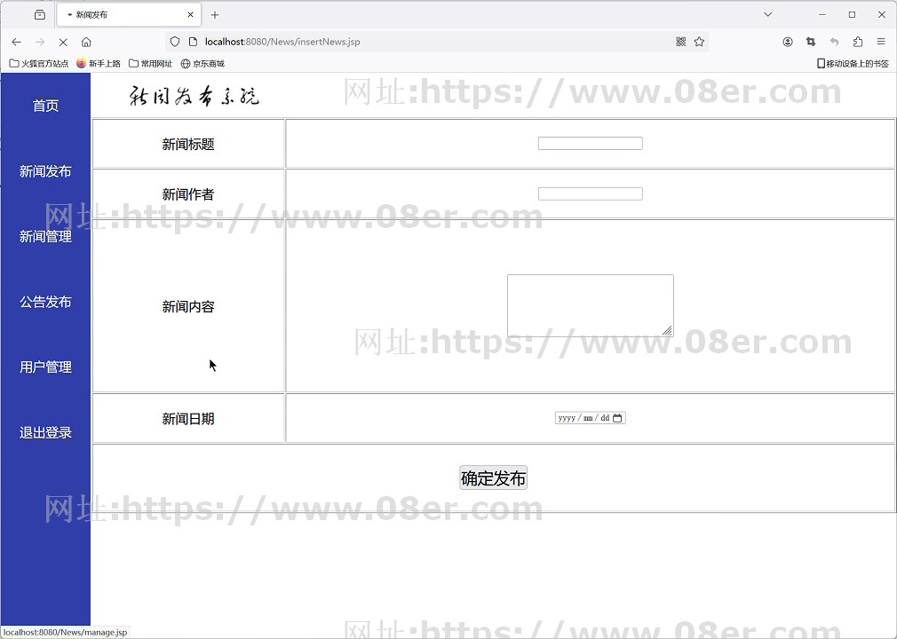 java web jsp新闻管理系统 新闻发布系统新闻推荐系统项目web源码~js10031 发布时间:2024-03-13 18:16:15 浏览次数:26 评论次数:0 数据库+源码+运行教程+演示视频jsp+servlet+mysqleclipse导入运行下载地址:js10031.zip 关键词:JavaJSP新闻管理系统Web开发项目源码学生课程设计毕业设计参考技术教程 您可能还会喜欢: java ssm web房屋租赁管理系统源代码 租房管理系统 mysql 文档 java ssm 教材管理系统 教材订购管理系统 源代码 mysql 文档ppt SpringBoot就业信息管理系统javaweb企业学生岗位统计bs源码mysql Java mysql学生管理系统 控制台程序源码数据库成绩选课管理 java个人博客系统javaweb源代码jsp项目源码文档sqlserver 基于ssm框架javaweb游戏售卖商城vue模拟游戏售卖管理系统mysql